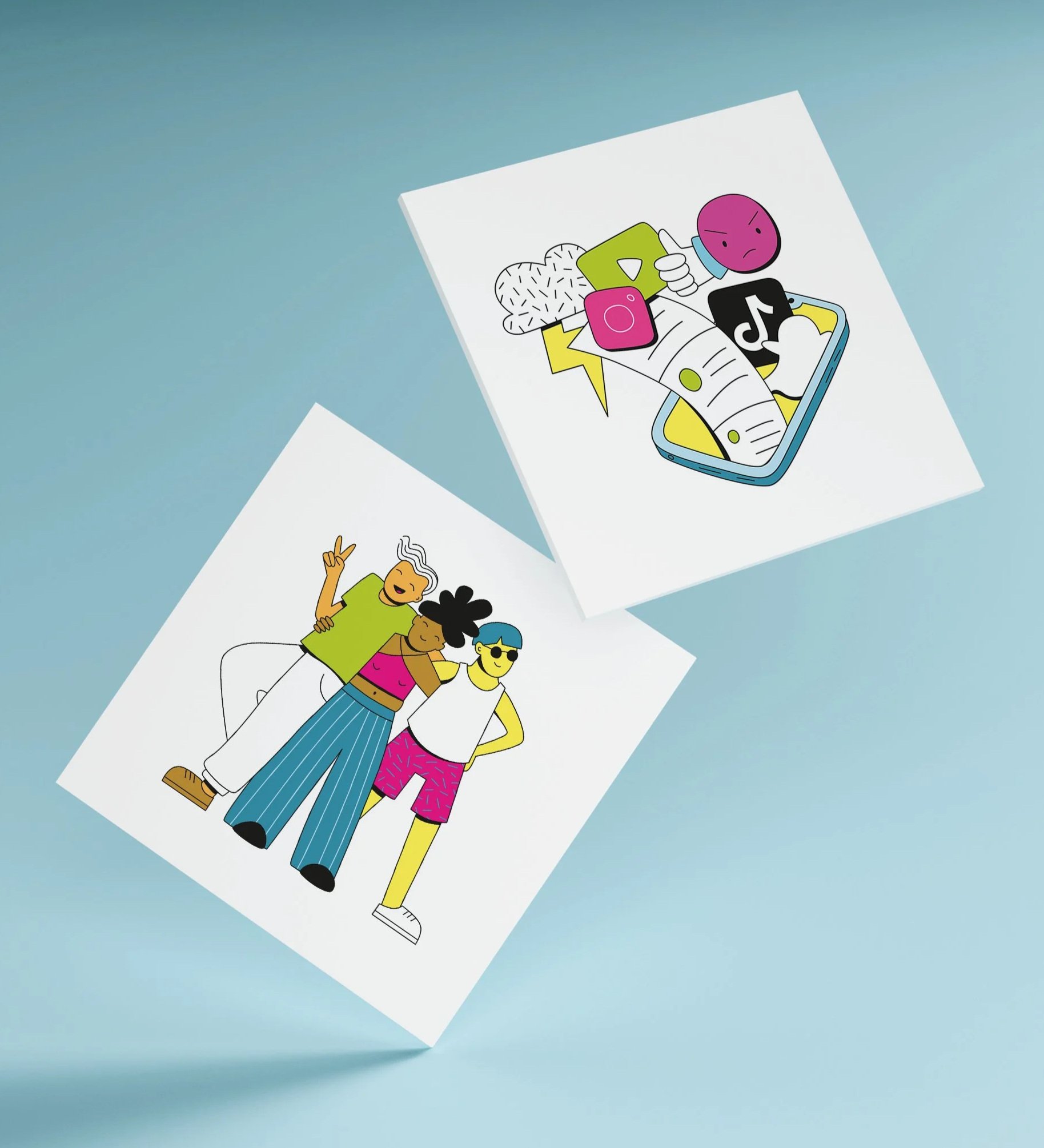 Illustrations for research report on the topic of in-game purchases in video games among young people in Austria.