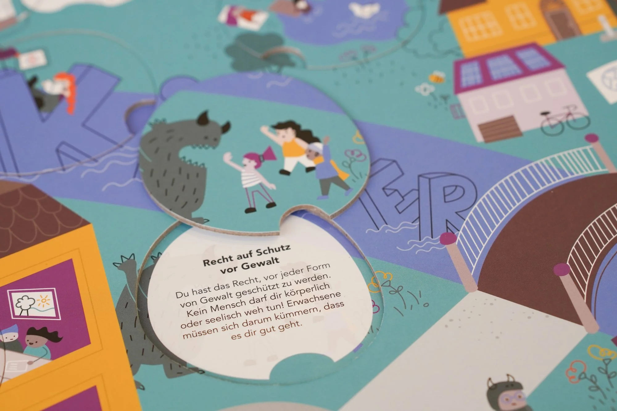 The hidden-picture for KINDERBÜRO is a fantastic way to introduce children to their rights. The colorful and playful illustrations appeal to young people and encourage them to learn more about their rights. The thoughtful way that each right is hidden behind different images makes it both engaging and educational. A creative and educational approach that's perfect for elementary school children.